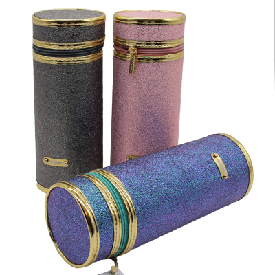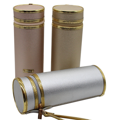 جامدادی چرم طبیعی به شکل استوانه بسیار جذاب و لاکچری داری سر زیپ طلایی